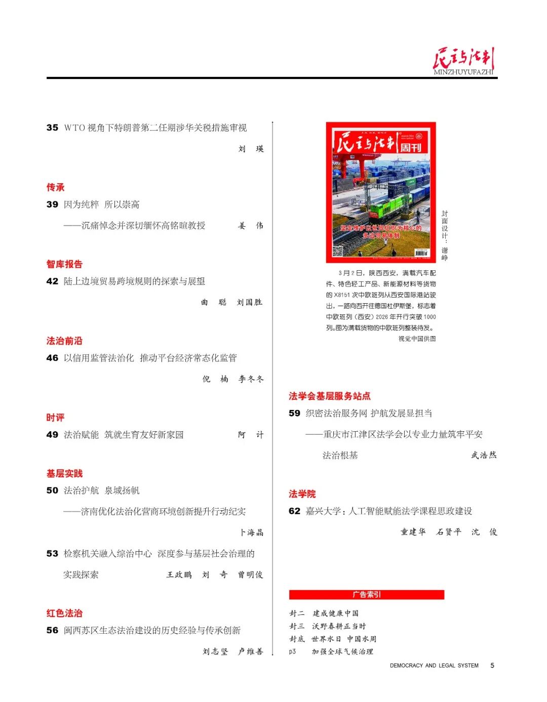 封面聚焦“坚定维护以世贸组织为核心的多边贸易体制”《民主与法制》周刊2026年第10期目录